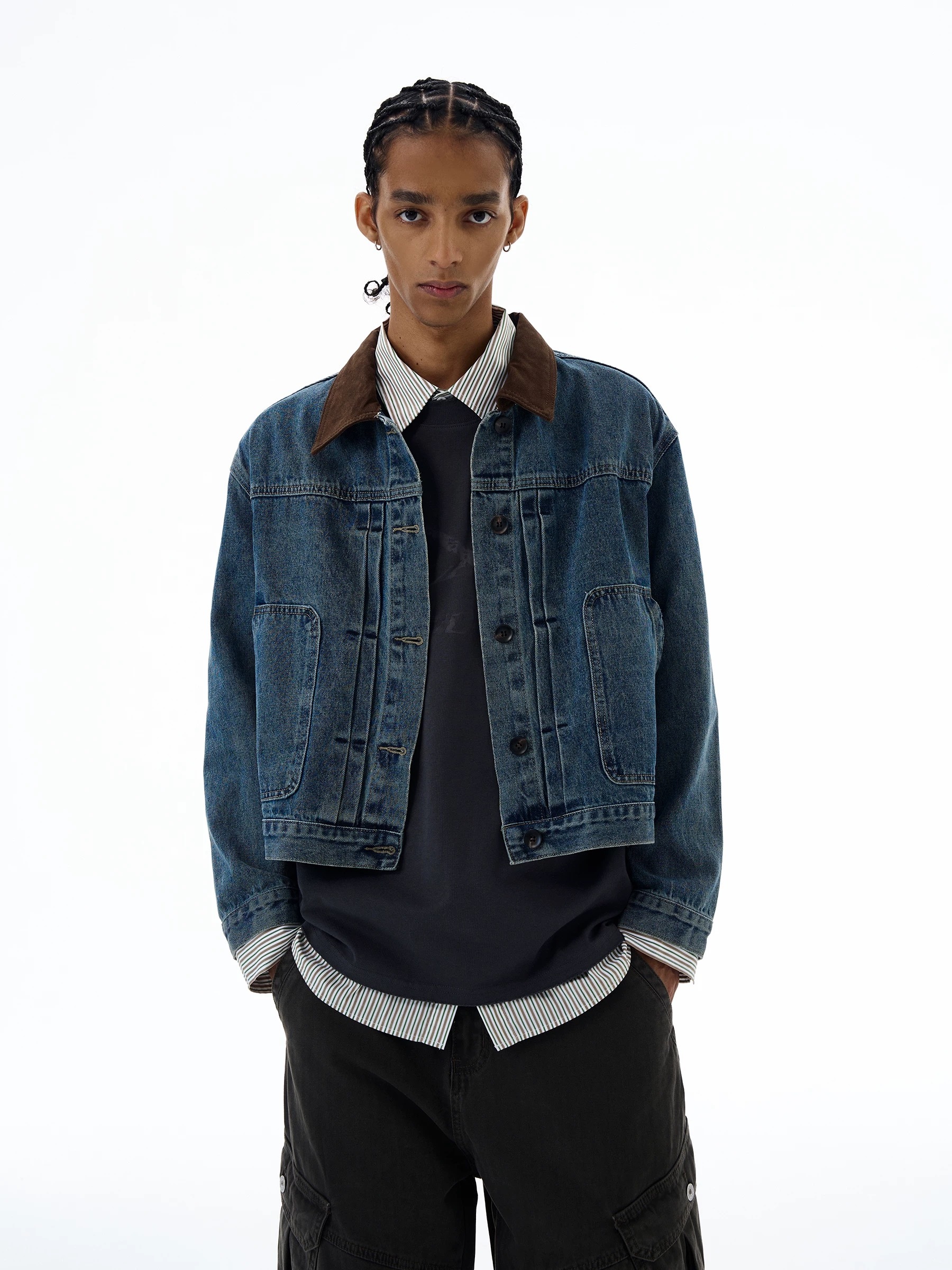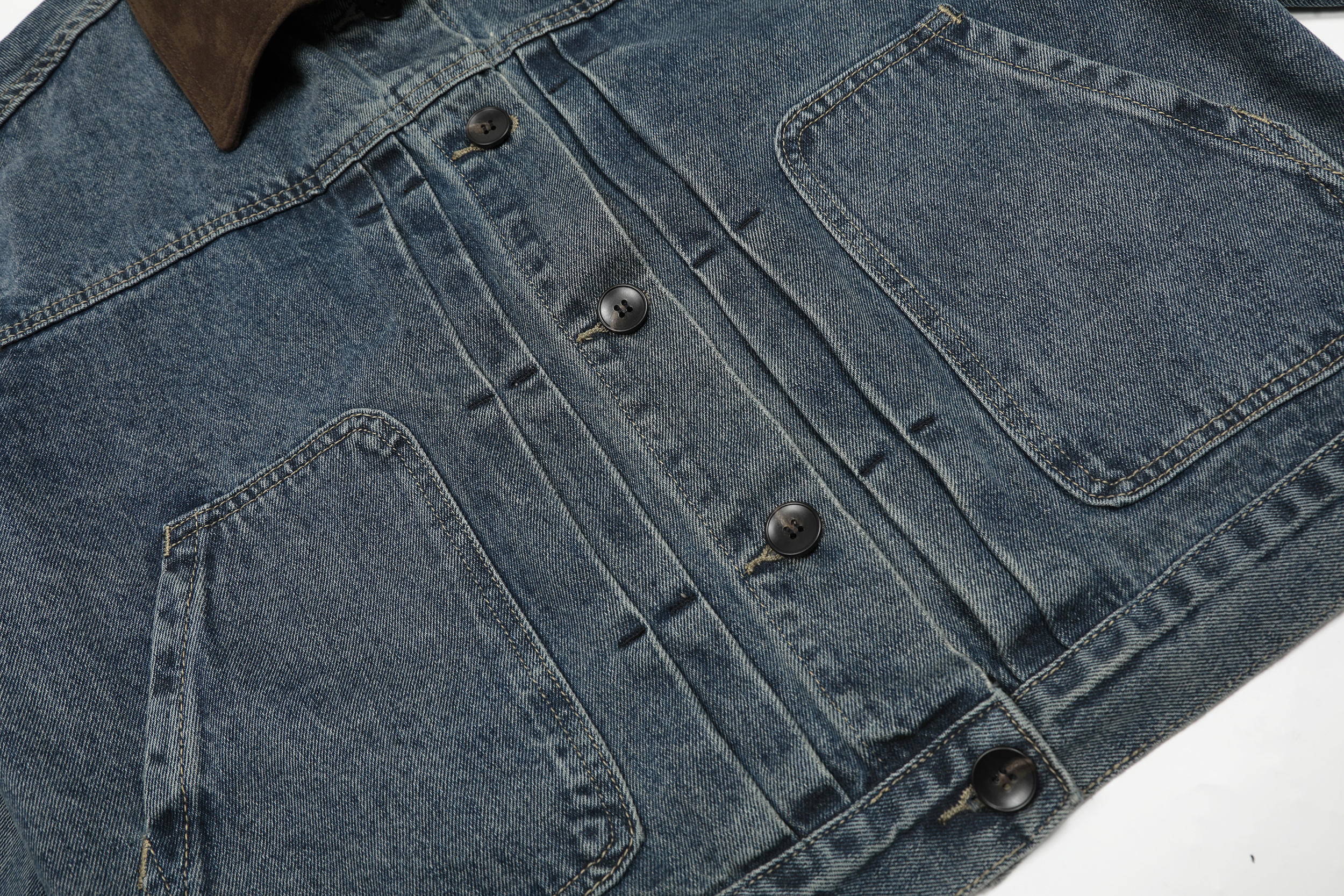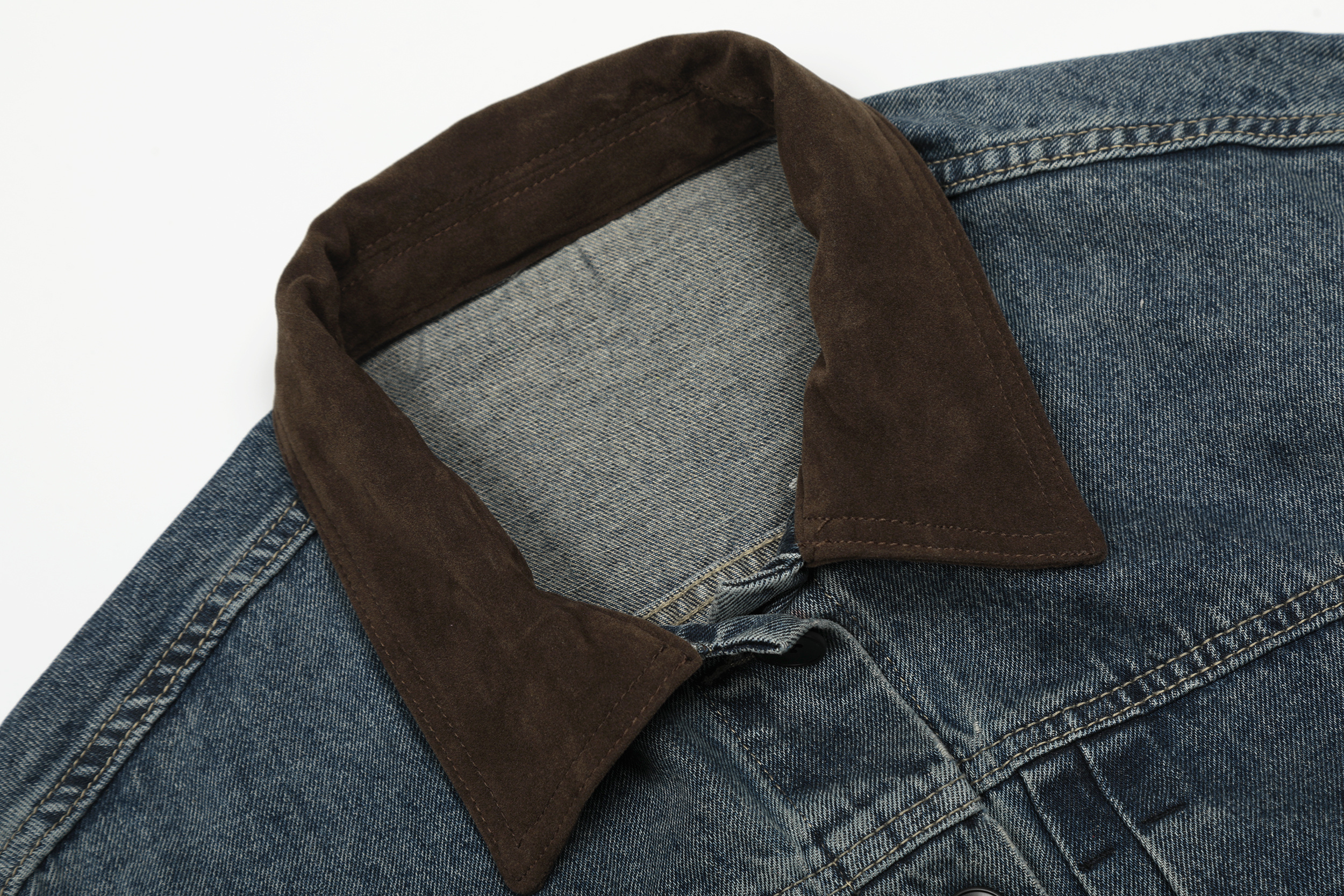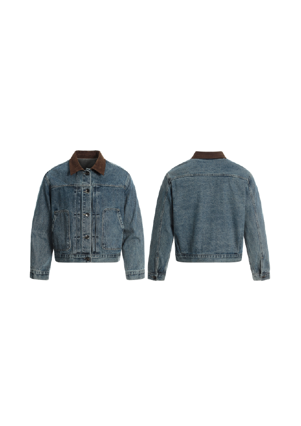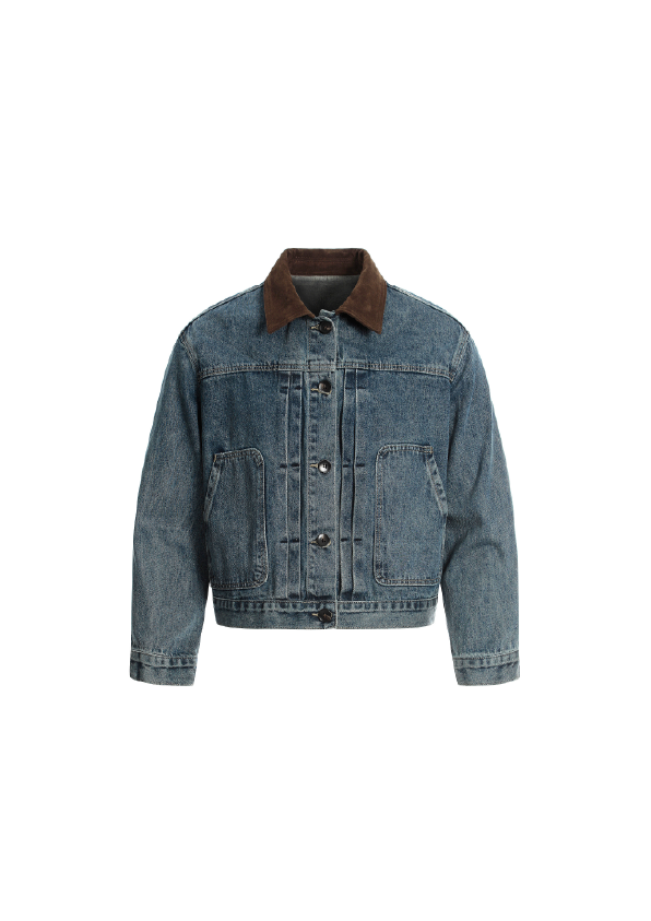 SIMPLEACTION 美式復古棕色絨面翻領牛仔外套