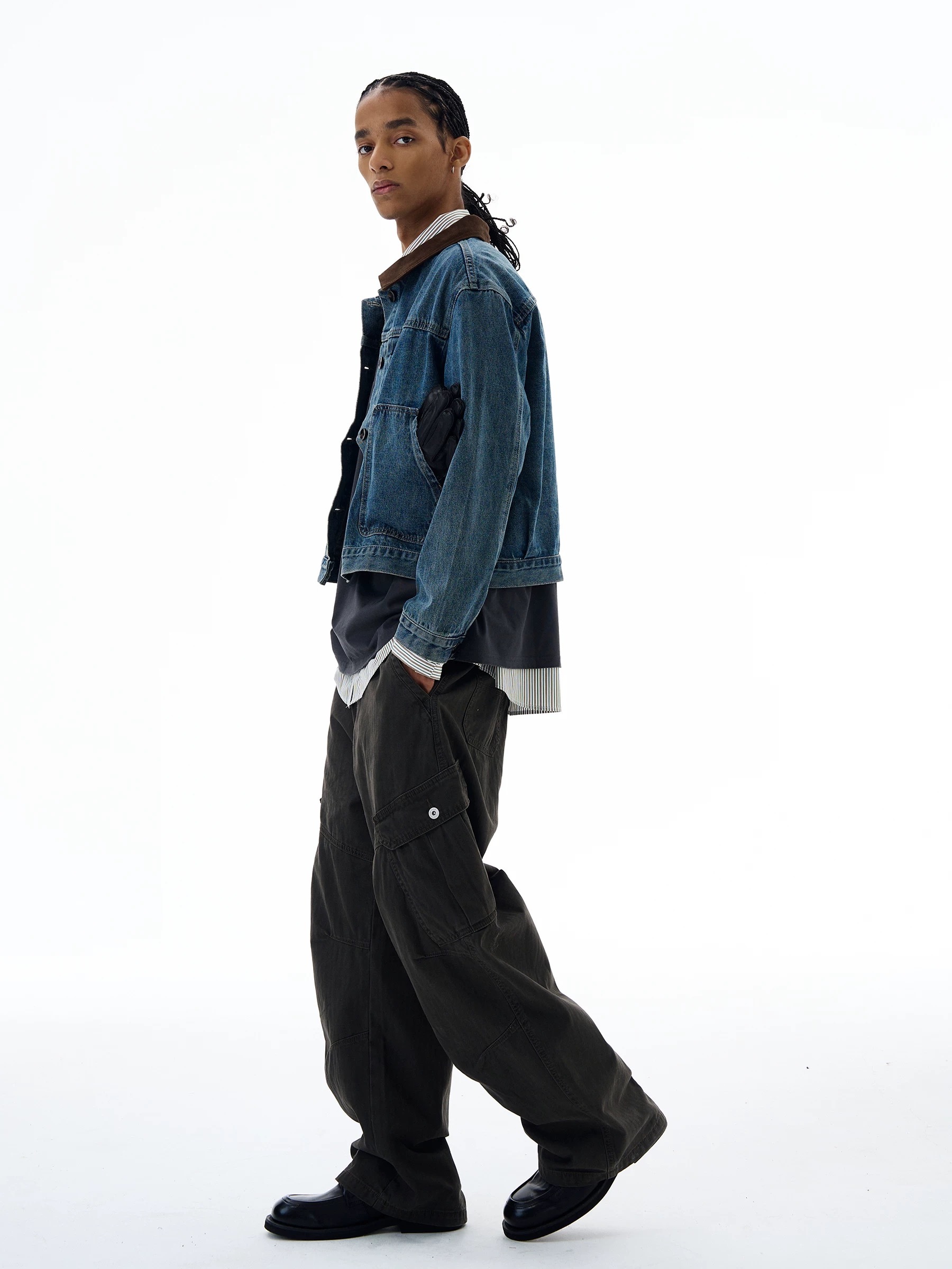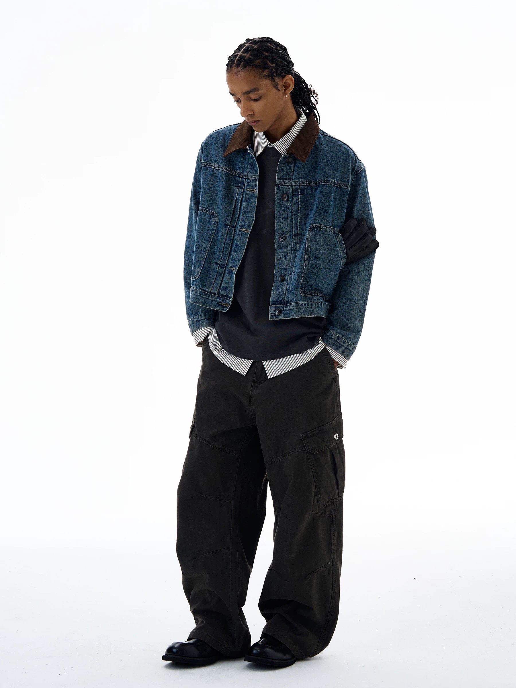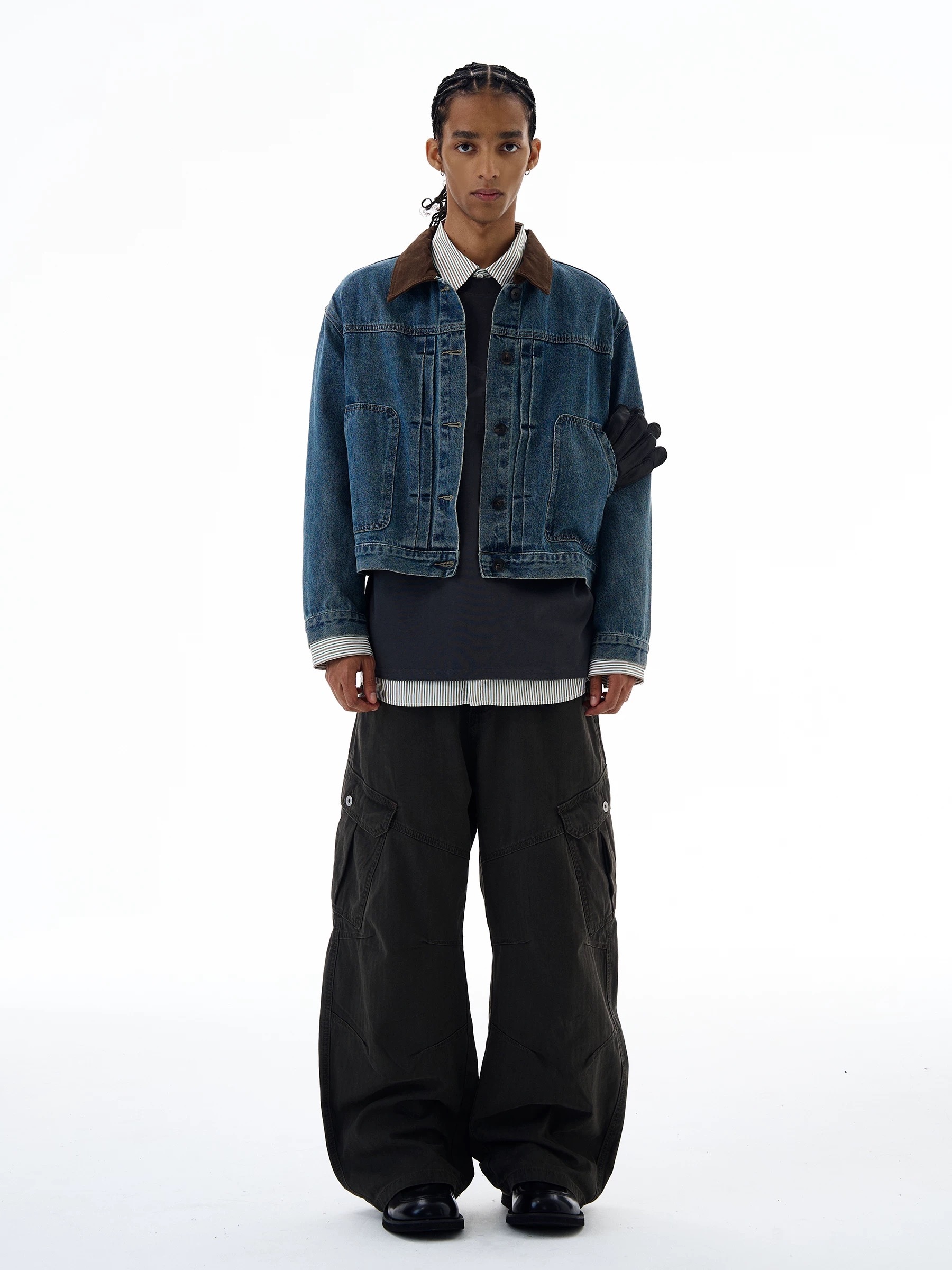 SIMPLEACTION 美式復古棕色絨面翻領牛仔外套